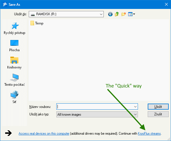 - In the newly shown Save file dialog, navigate to the folder where you want to create the set of Stream files (for each track one). There exist two ways (quick and precise) to create KryoFlux Stream files.